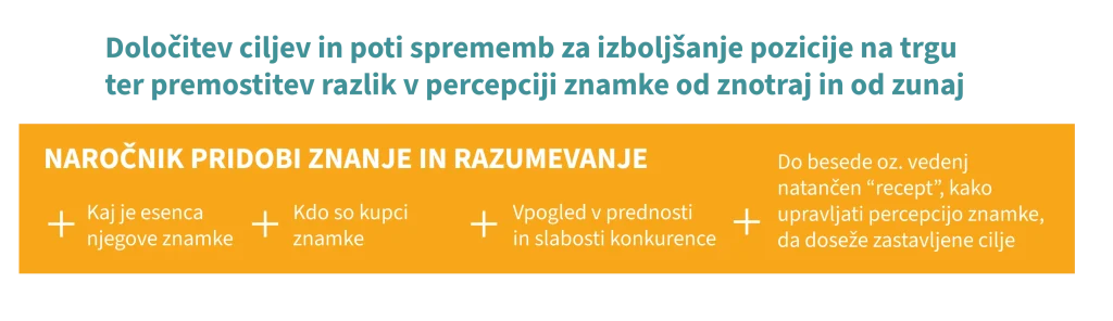 Odkrijemo dejanske razlike med želeno in zaznano podobo ter vam ponudimo konkretna priporočila, s katerimi okrepite tržno pozicijo svoje znamke.